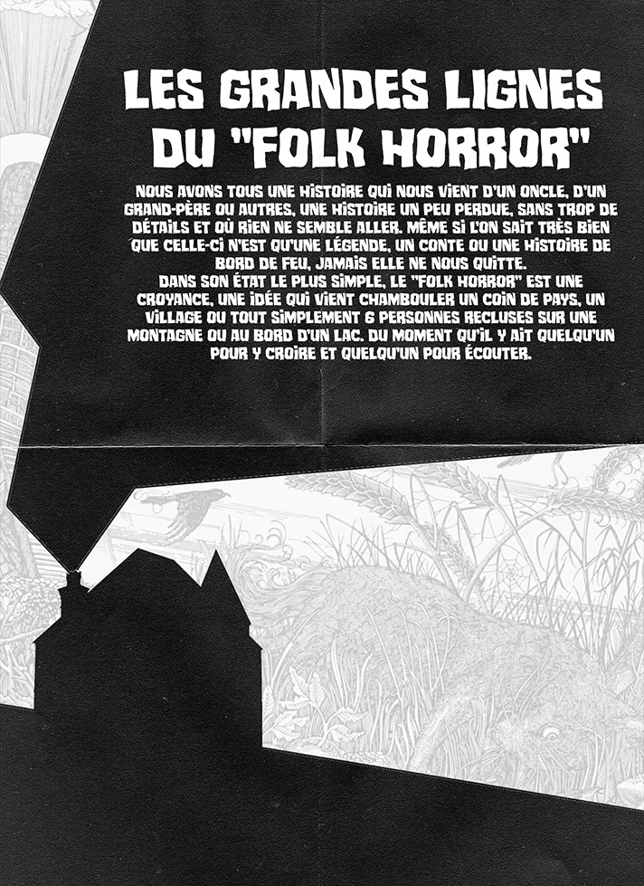 Dans ce premier numéro, vous trouverez les entrevues d'Alain Vézina, de Rich Ragsdale et, de celui qui interprète le maintenant populaire Art the Clown, David Howard Thornton. Nous soulignons aussi les anniversaires des films Re-Animator et Demon Knight. Nous vous présentons différents folk horror et autres petits bijoux moins connus en cinéma et bande dessinée.