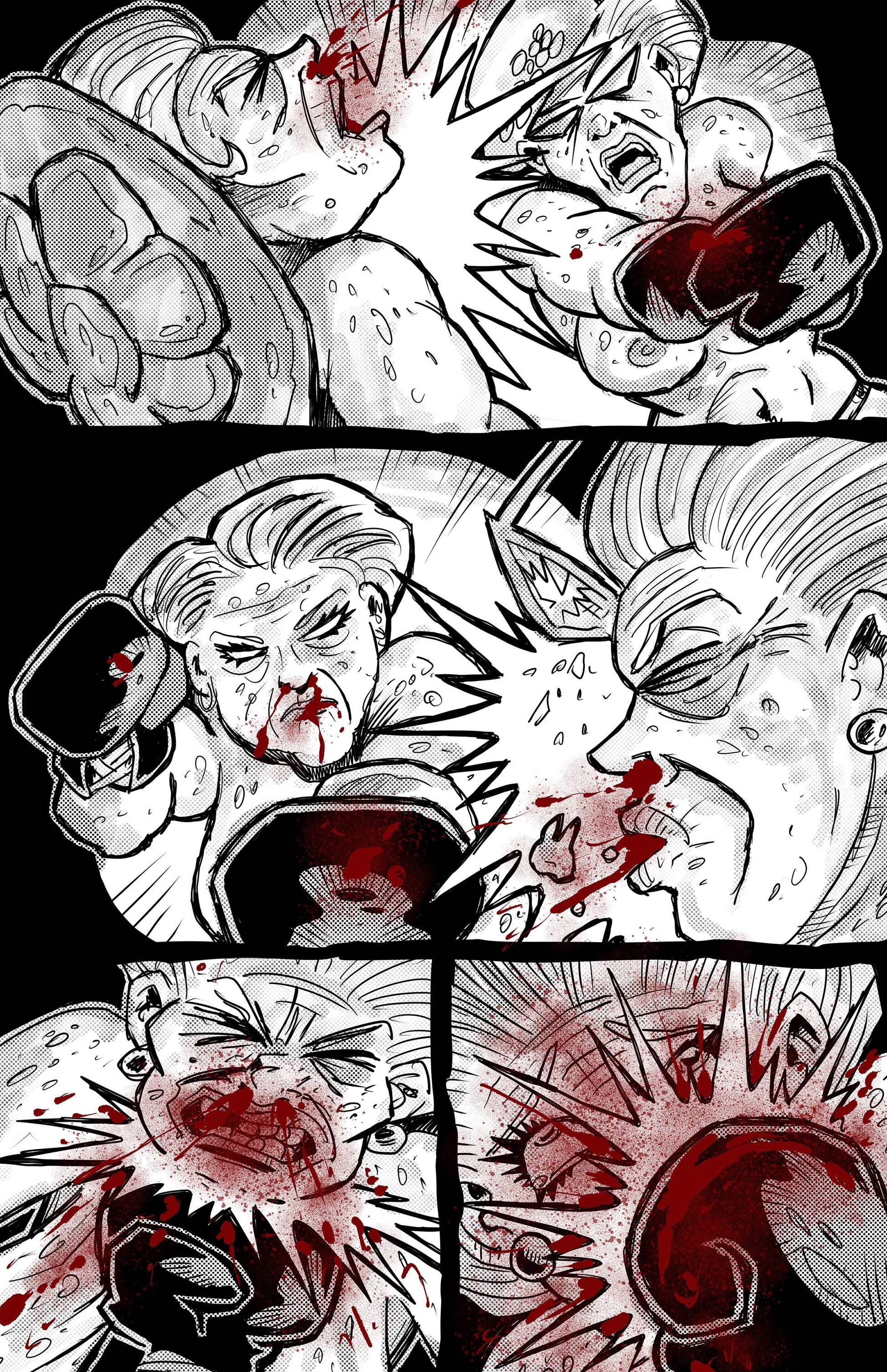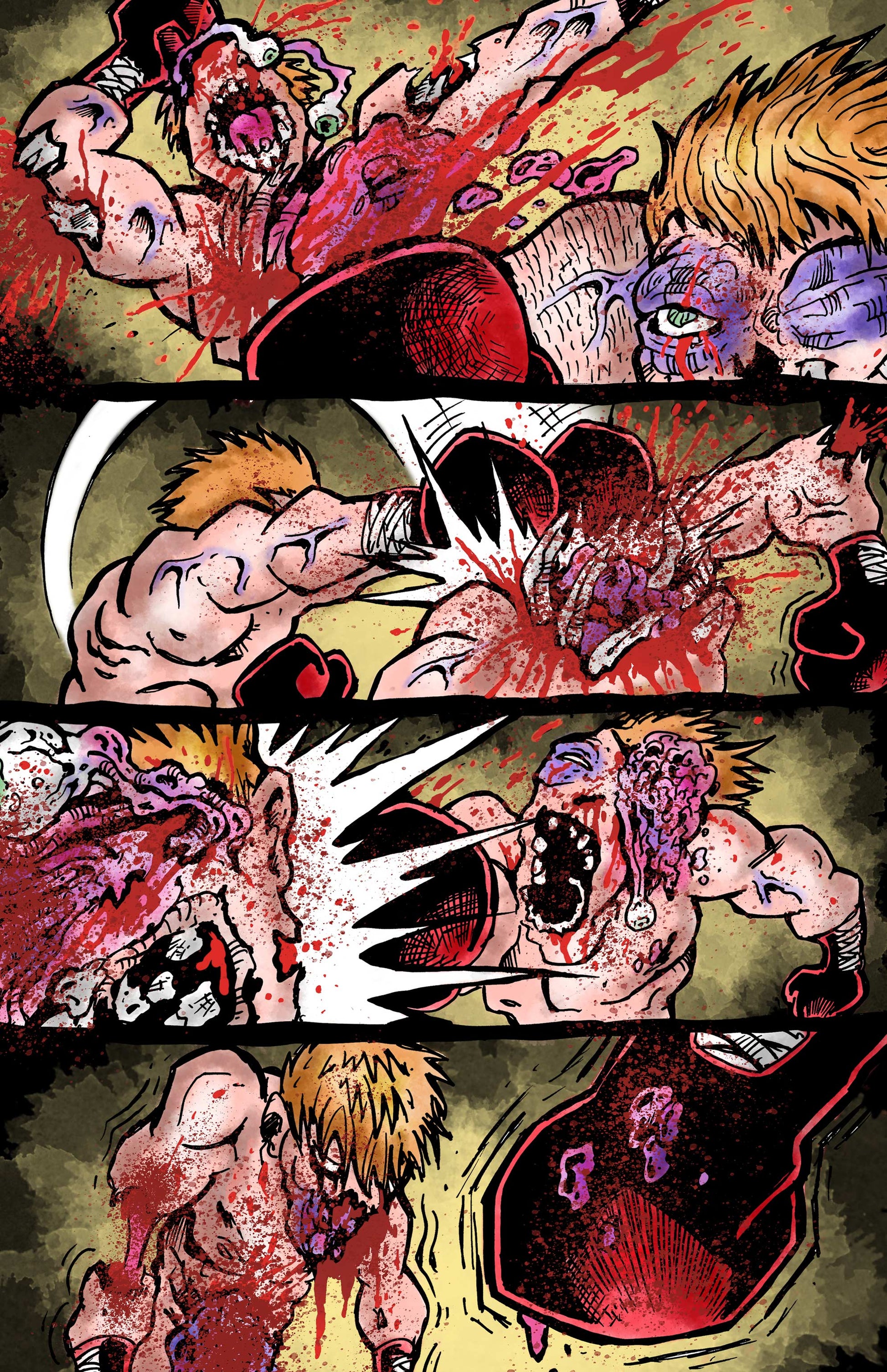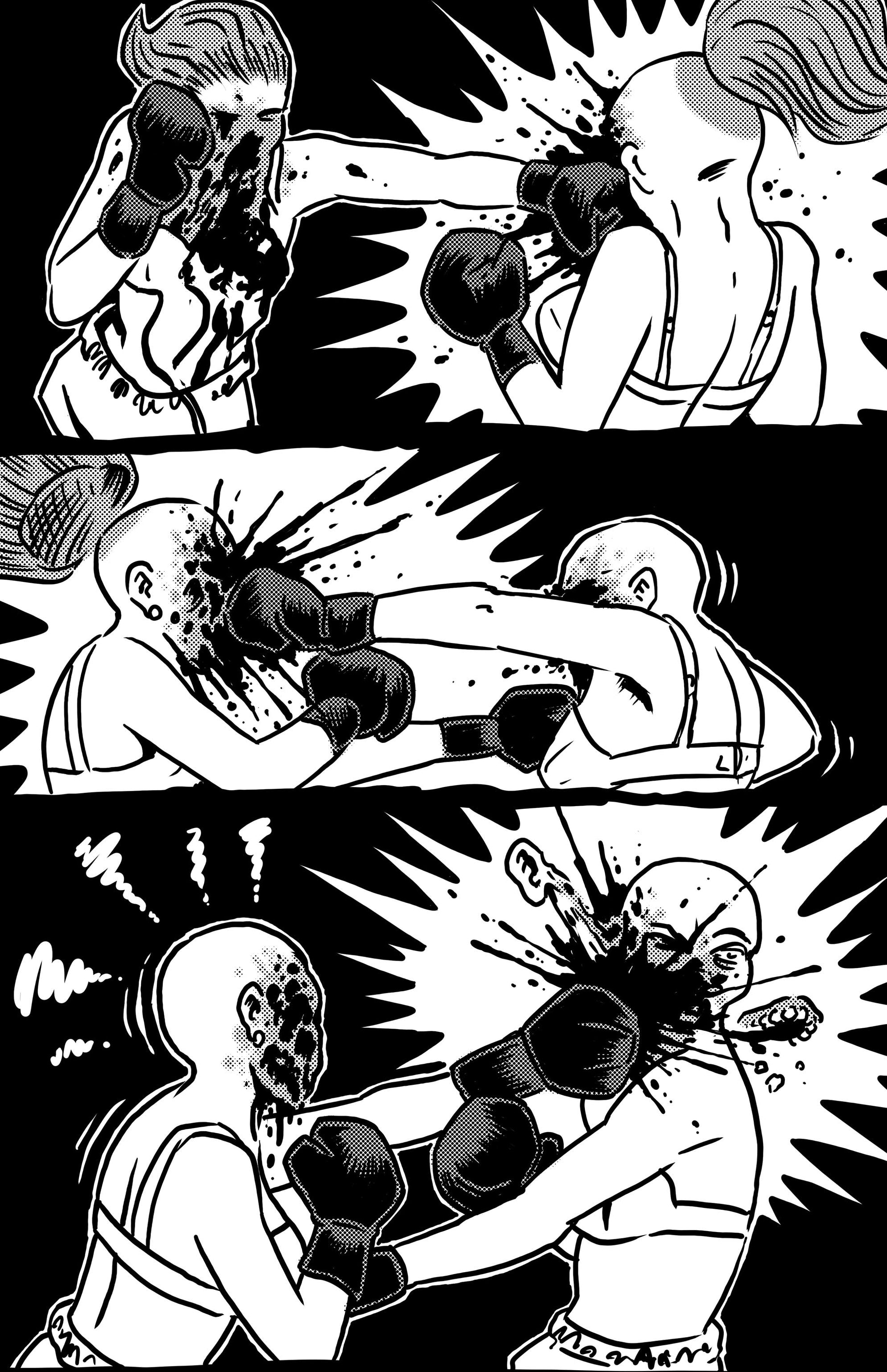 A collection of extremely brutal and grotesque comic strips involving over the top boxing matches and more.